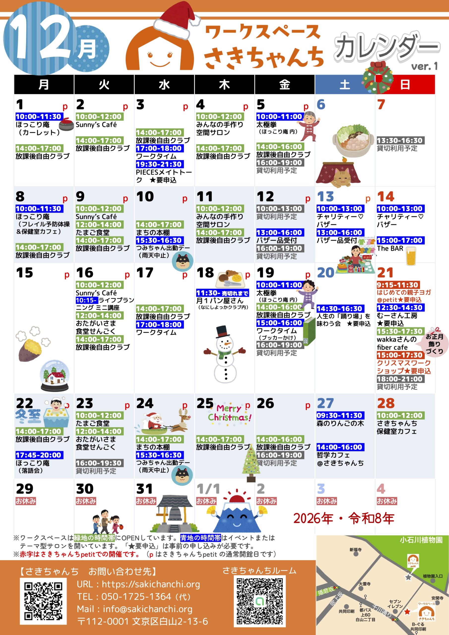 2025年12月13日(土)10:00~13:00 (なにしよっかクラブ内)