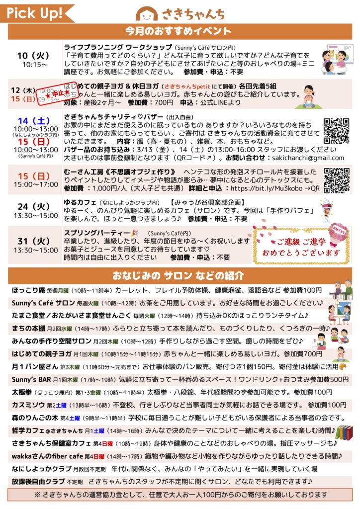 ※大人の方は さきちゃんち運営協力金 として100円~のご寄附をお願いいたします。